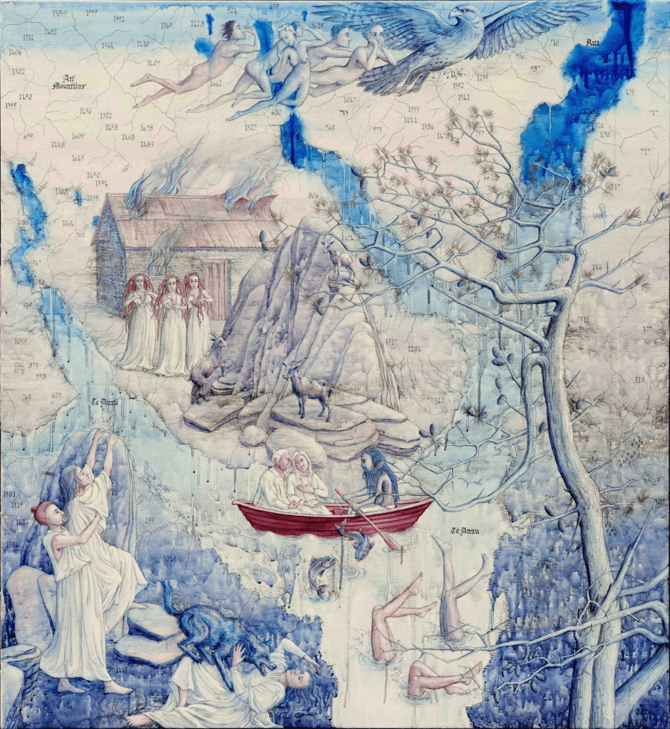 Roger Mortimer is one of New Zealand’s most significant living artists working in the ‘landscape’ genre. Mortimer has been aptly described as ‘a contemporary visual mythologist’ and is widely recognised for his distinctive use of medieval imagery, juxtaposed with early marine maps of Aotearoa. His work gives a post-modern and post-colonial take on the charting of the local coast lines. Mortimer graduated from the Elam School of Fine Arts in 1999. In 2014 he was the Paramount Award Winner in the Wallace Art awards – one of New Zealand’s top art awards. In 2017, a survey exhibition of his work, ‘Dilemma Hill’, was shown in public galleries in Wellington and Auckland.