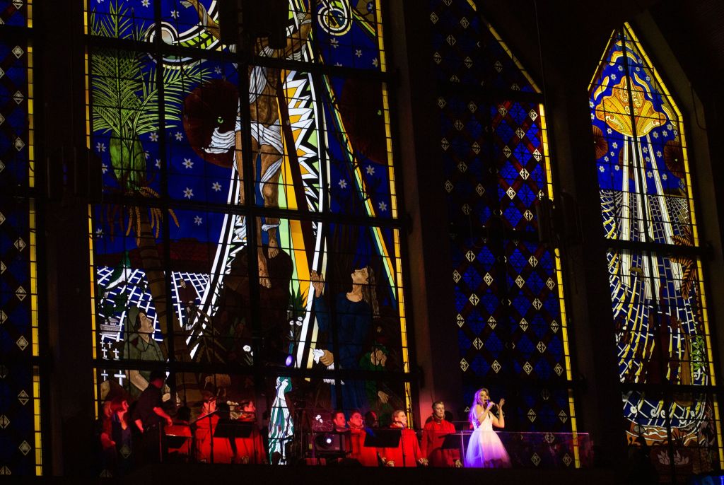 God arrived at the Holy Trinity Cathedral in Parnell this week in the form of Jupiter who disrupted the wedding ceremony of Semele the daughter of Cadmus, king of Thebes, to Athamas. Then he had some of his biker friends spirit Seleme to his heavenly realm so he can pursue his adulterous affair with her. But this coupling is only part of a larger love dilemma as we learn that Ino, Semele’s sister, is in love with Athamas and Jupiter’s wife Juno of course is incensed by the affair and is determined to destroy the woman who has displaced her