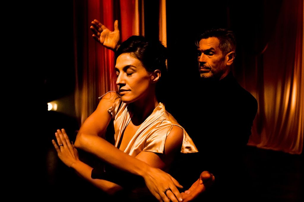 Strasbourg 1518 opens sedately enough. A crowd of people I advance hall moving slowly to gentle music through there are hints of Schubert’s “Death and the Maiden. This serenity is soon interrupted by a couple – Death (Michael Parmenter) and The Maiden (Lucy Marinkovich) dancing a more elabiorate ballroom dance duo. They whirl about the stage energetically, a mix of Dancing with the Stars and musical, Ginger Rogers and Fred Astaire meets Margot Fonteyn and Rudolph Nureyev.