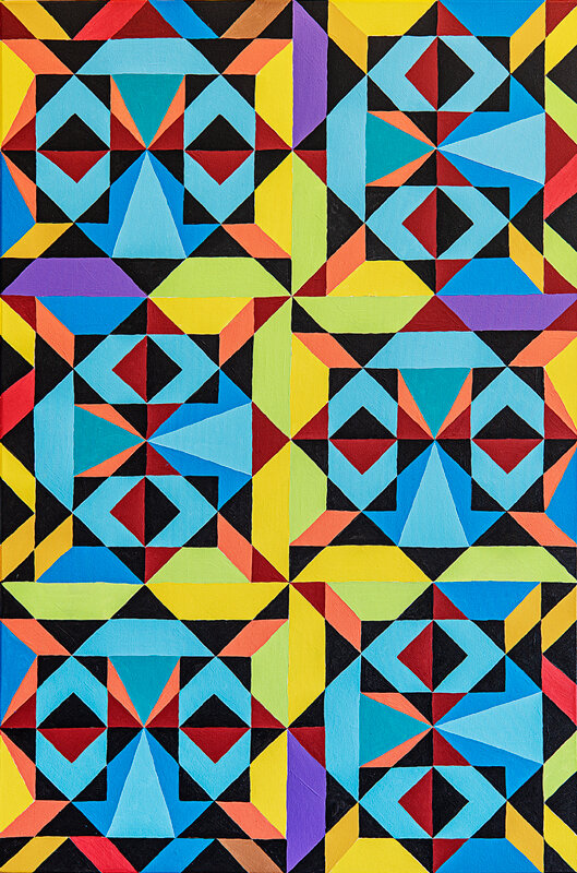 Known for her dynamic prints and paintings that often draw from the kupesi designs on ngatu (mulberry) fabric. Dyck has drawn new and significant inspiration from the garments worn by her ancestors. She has continued her exploration of ngatu motifs and closely woven kato alu and kato mosikaka baskets, as well as elaborately feathered sisi fale waist garments and kiekie, fala mats, and helu combs.