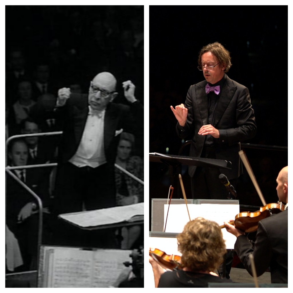 Film of the concert shows the composer conducting in a measured manner but throughout there are times when his arms are raised making him look eagle-like in appearance.