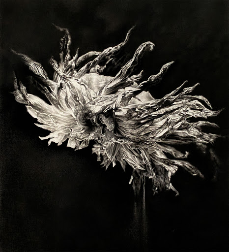 “Shooting Star” which looks more like an exotic marine creature depicts a bloom which has been affected by the elements as well as looking like an erupting sun, the tendrils of the flower like solar flares.