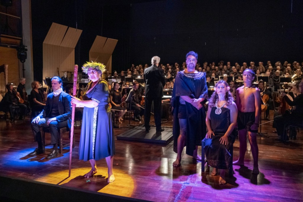 This work by composer Tim Finn, co-composer Tom McLeod, with Tahitian monologues by Célestine Hitiura Vaite, tells the story of Tupaia, the Tahitian star navigator who sailed with James Cook, on the maiden voyage of the Endeavour in 1769. Ihitai ‘Avei’a – Star Navigator explores the relationship between two master mariners, each from vastly different worlds, both far from home and unable to find their way into each other’s world.