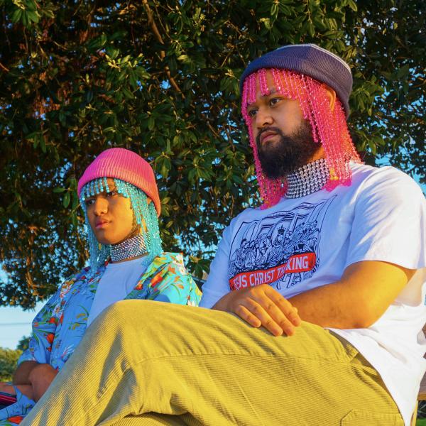 Tāmaki Makaurau-based Tongan artists Sione Monū and Manuha’apai Vaeatangitau present Kindred: A Leitī Chronicle, a multisensory installation that projects leitī (transgender women) experiences into a futuristic alternate reality. Executed in Monū and Vaeatangitau’s animated and playful graphic style, each portrait pays homage to these leitī and their significance in these artists’ lives.