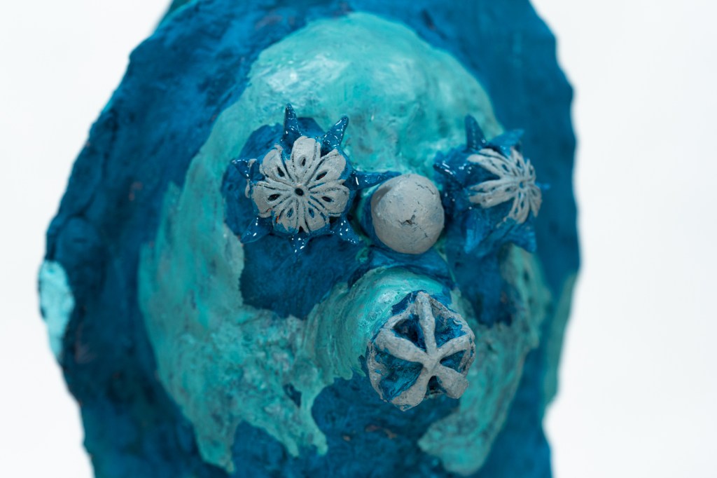 Her Dust Collector project consists of many heads. Heads that turn, pushed and pulled, pressed and cracked, holding space within them like vessels. The forms themselves are imaginatively based on the traditional totem poles found in South Korea across the countryside.