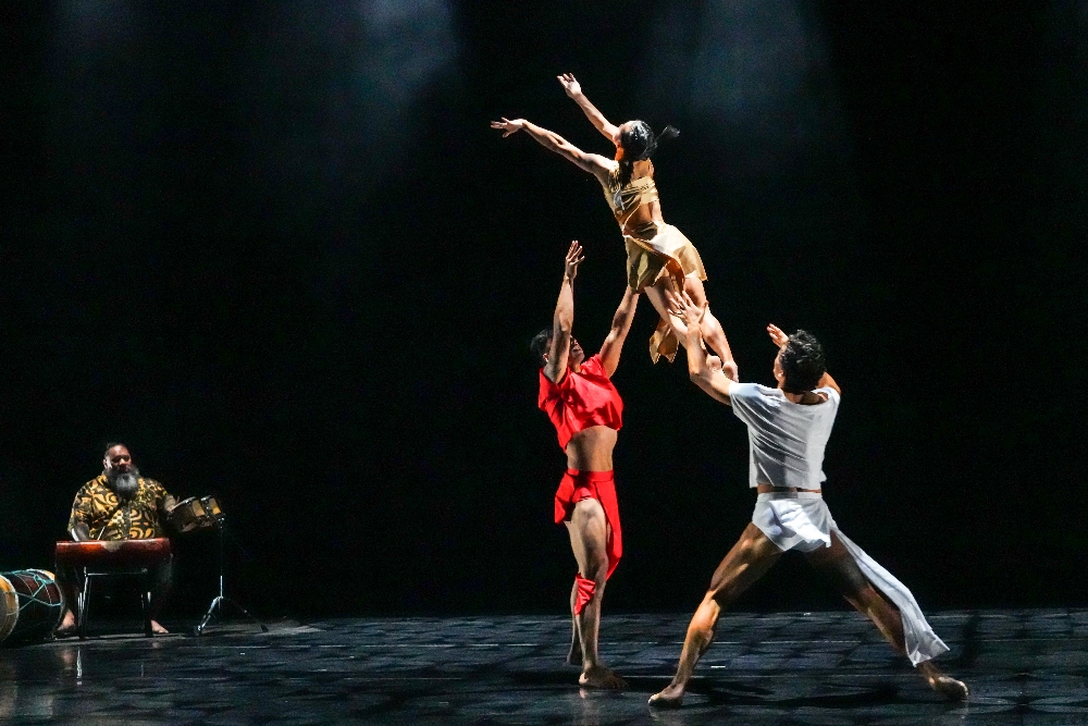 The second work, Fatu (Heart), a New Zealand premiere, is inspired by an artwork gifted from eminent visual artist Fatu Akelei Feu’u (ONZM) and performed to an original soundtrack including live drumming by Isitolo Alesana and the vocal colours of Te Vaka.