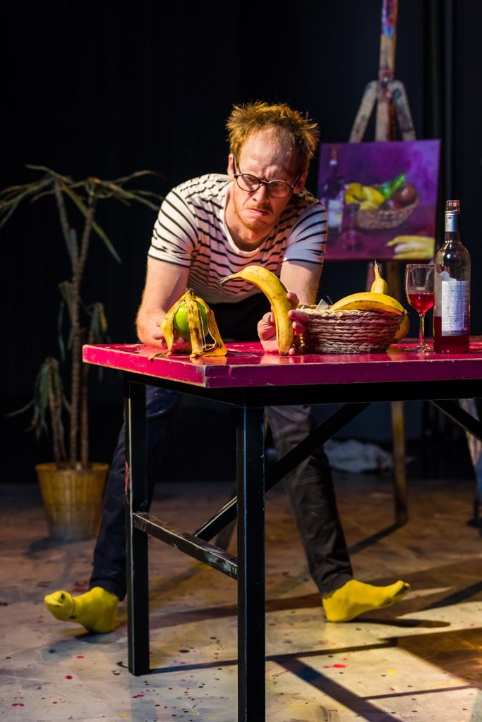 We are in an artist’s studio where we encounter The Artist (Thom Monckton) who over the course of an hour produces / assembles / finds several artworks which in the end are brought together for an art exhibition. Monckton explores a number of the tropes about art and artists which he plays with or gets lost in.