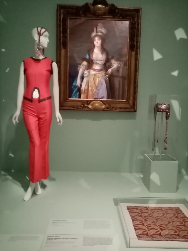 On display with one of the works from that show is a Turkish liturgical veil, a wedding headdress from Palestine adorned with Turkish coins as well as Hapsburg coins depicting Maria Theresa. There is also a portrait by Jean Baptiste Greuze of woman in Turkish dress from 1790 a time of exoticism in French painting. This small display demonstrates his varied sources of inspiration.