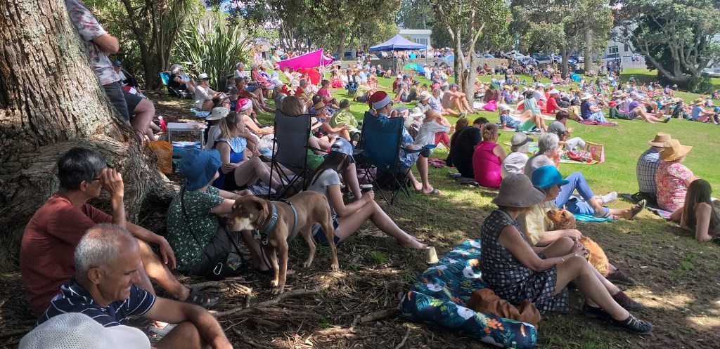 Returning after a Covid enforced cancellation last year, this Takapuna annual hit the ground running for the 17th time this Christmas. The 5-600 strong audience was in a mood to celebrate and delighted to be back. The sun was out, the tide that was full and the corks were popping.