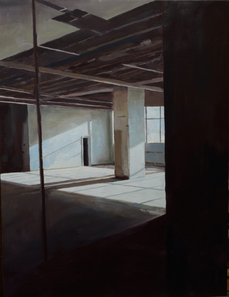 With the empty space of “The Old Post Shop” ($2200) the artist is focused on the play of light and shape in the disused space while with “Ventilator Shaft AUT – study” ($500) the concern appears to be in contrasting an architectural shape with the shadow of another architectural shape.