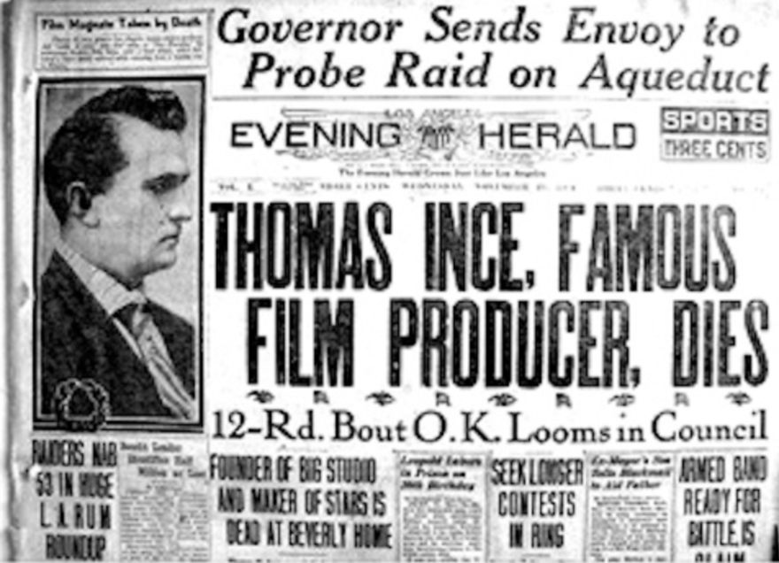 However a 100-year time-shift had somehow taken place and the year was now 1924. The silent film industry was in its heyday, prohibition was making parties like this the domain of the superrich and famed Hollywood producer Thomas H Ince (“Hi, I’m Thomas, better known as the Father of the Western, and you are … ?”) had been invited aboard the prized yacht of newspaper tycoon and the most powerful man in Los Angeles, William Randolph Hearst for the weekend (”Hi, I’m WR, welcome aboard”).