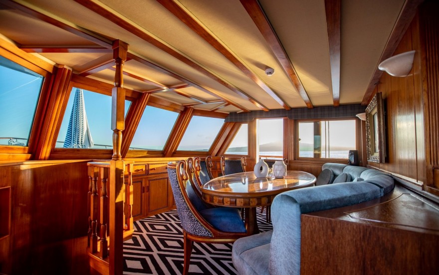 Sea Breeze III was formerly owned by billionaire Graeme Hart and is now the pride and joy of Charlotte Devereux who painstakingly refurbished the 1976 super yacht in an authentic and stunning art deco style with her partner Simon Greenwood.