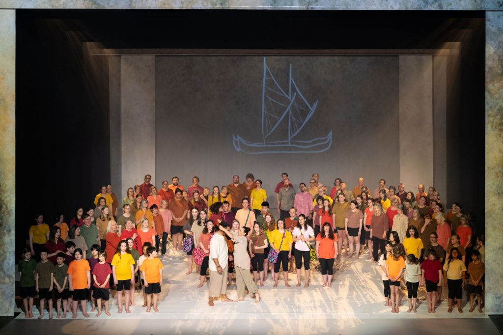 Hearing the cries of the Athenians, Theseus (tenor Ipu Laga’aia) who is actually a demigod as well as human decides to go with the group of children to Crete intending to kill the creature. His mother (mezzo-soprano Sarah Castle) pleads with him not go, expressing the anguish of all mothers whose sons go off to battle. The children are led through the maze by Daedalus (bass-baritone Joel Amosa) where Theseus finds and battles the Minotaur. Having killed the creature, he returns the children to Athens having destroyed the Cretan ships.