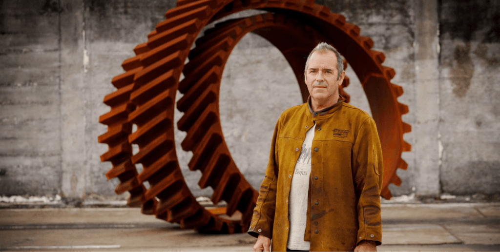 In his 2026 work, the weathered corten steel operates as both object and aperture reflecting David McCracken’s enduring interest in balance, repetition, and the tension between solidity and illusion.