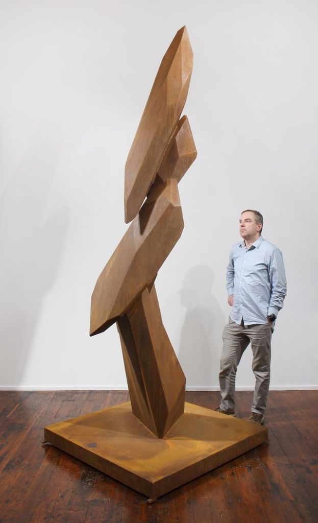 ARLOS, silk & RYOS, Ben Pearce’s large-scale sculpture celebrates nature, its strength, and its delicate balance. The boulder-like sections of his towering forms seem tethered to the firmament yet soar into the air like the supports of some natural colonnade. figurative aspects and character emerge giving them a sense of animated presence. Shapes and concepts emerge and disappear as the forms interact with the space around them.