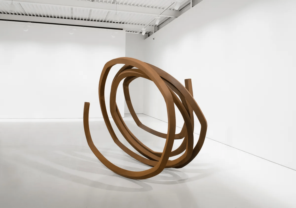Bernar Venet’s Indeterminate Line is a steel form where bending and twisting are balanced with chance. Loops coil and unravel, reflecting the artists decades-long exploration of lines, geometry, and the interplay of order, chaos, and material presence.