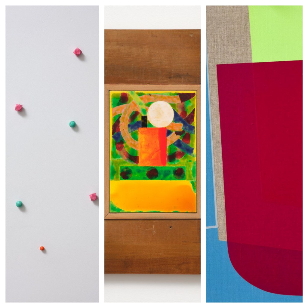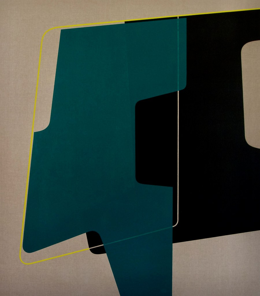 Where Borell’s works may be ethereal the paintings of Hiria Anderson are embedded in the real world of the present. Her kowhaiwhai patterns are the wallpaper framing a power socket in “Electric Kowhaiwhai – Teohaoturoa Whare on Turongo St” ($3000) and in “Abstract Koru & Lock – Teohaoturoa Whare on Turongo St” ($3000). In these she presents the patterns as part of her lived environment.
