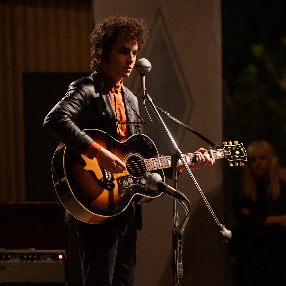 Timothée Chalamet isn’t going to convince a Dylan purist but he comes close to capturing the playing, the raspy voice, the subtle gestures and movements along with his ambivalent and unpredictable reactions to people and events.